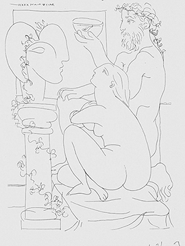 Another leitmotif in the form of ‘water’ pervades 21 of the 46 etchings for The Sculptor's Studio and is depicted by motifs such as fish in a glass bowl, flowers in water or a sculpture of a woman in the act of drying herself with a towel (Figs. 25-27). Given the proximity of these works to Marie-Thérèse’s recuperation the allusions to water seem to harp back to the theme of the Rescue and the cause of the illness. If this is the case then, in autobiographical terms, The Sculptor’s Studio etchings become Picasso’s tranquil, thankful celebration, of Marie-Thérèse’s return to health following his traumatic response to her accident and illness. In contrast to the skeletal anatomy drawings these etchings portray a voluptuous recuperated muse peacefully enjoying the artist’s company in an idyllic setting.