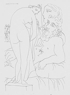 Fig.26 Picasso. Sculptor and Model Observing a Sculpture of a Woman Drying Herself with a Towel, The Sculptor's Studio, Vollard Suite, etching 27-5-1933
