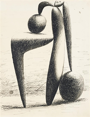During his 1928 Dinard beach holiday that secretly included his muse, he created sketchbooks that once again contained numerous depictions of increasingly sculptural figures, but this time they were made up of an assortment of pebble and bone-like shapes (Fig.12). According to John Golding the Dinard pebble and bone figures pre-figure the Une Anatomie series in terms of assemblage or skeletal structures (Golding 1973: 101). These sketchbooks clearly demonstrate that Marie-Thérèse ignited his desire to create sculpture at a time when he did not have a sculpture studio and he, therefore, used virtual techniques to personify her and his desire for her. After purchasing Boisgeloup, an 18th-Century French Château near Paris in 1930, his sculptural depictions of Marie-Thérèse no longer remained virtual and her distinct features began to appear in the form of numerous portrait heads. The monumental sculptural gravitas expressed in these heads confirm that he first and foremost perceived his muse in physical and therefore sculptural terms. George Brassaï’s photos of these heads featured in the inaugural issue of Minotaure along side Picasso’s Une Anatomie drawings, which depicted an altogether different sculptural view of Marie-Thérèse.