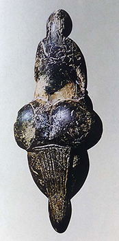 No oversized key appears in the beach hut door depicted in Une Anatomie’s title page, which was produced four days before the first of the Une Anatomie drawings (Fig.13). However, the presence of a reclining male, a child and a fecund archaic goddess-like figure gives pause for thought. The woman’s fulsome form is a stark contrast to the skeletal female forms that follow and is also unlike the sexually active femme phallus or ithyphallic women in Picasso’s 1927 and 1928 sketchbooks. Neither is she like his wife Olga, the frail ex-ballerina. On the other hand she is like the Venus of Lespugue, the archaic fertility goddess that Picasso was known to have copies of (Fig. 14).