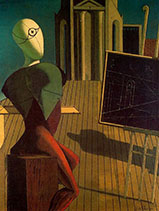 Les principaux thèmes de prédilection de l’œuvre de De Chirico ont été déterminés alors que l’artiste était âgé de vingt ans : la relation entre la perspective métaphysique, la poétique de la discontinuité spatio-temporelle, les métalangages visuels centrés sur des images telles que les fruits votifs, le voyage et le voyageur, le Chevalier Errant ou Ariane dans le contexte du sommeil et du réveil spirituel. Ces thèmes ont trouvé une expression visuelle dans de nombreuses compositions axées sur des images de places, d'intérieurs, de mannequins, de gladiateurs dans des intérieurs domestiques, de peintures de natures mortes (ou de vies silencieuses comme il préférait les appeler) et de portraits et d’ autoportraits (Figs 1- 6).