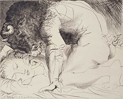 6. Pablo Picasso Minotaure caressant la tête d'une jeune fille endormie avec son visage 1933
