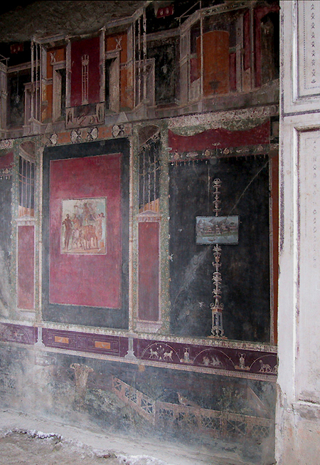 It is very tempting to proceed straight to the wall-paintings themselves and to discuss them as if they were independent cultural artefacts or pictures in an art gallery. However, to do so would only increase the amount of formalist rhetoric that already engulfs them. Teasing out yet further subdivisions of August Mau’s stylistic typology would also tell us nothing more concerning the people who commissioned them or those who viewed them. Indeed, it may well do the opposite and lead us further and further away from the fact that the paintings existed in domestic interiors and were therefore subject to shifting cultural values, having been commissioned, viewed and added to by different generations or new owners. Although it is true that some paintings remained unchanged for over 150 years, others were replaced due to cultural imperatives, decay or destruction by natural forces such as earthquakes. Hence, discussing them in terms of ‘their original context’ becomes highly problematical.