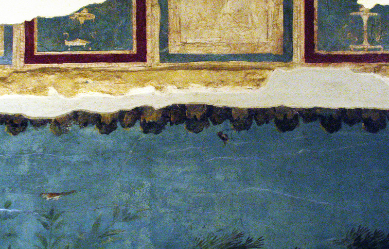 A similar jagged stone motif appears all round the upper edge of a wall-painting depicting a paradise garden in the Villa di Livia Drusilla-Augusto, located near Rome at Prima Porta.
