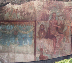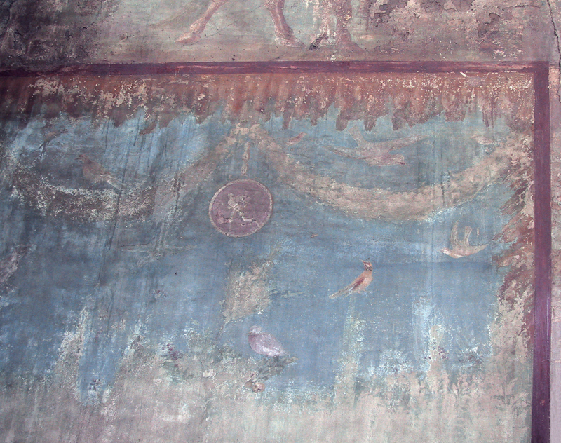 The room in which the wall-painting was found was partially sunken and is thought to have been used as a summer triclinium, designed to look and feel like an enchanting cool grotto, the ceiling of which contained emblematic references to the gods.