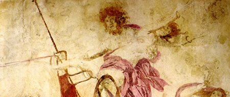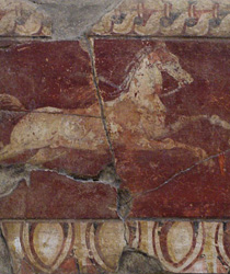 The current visual evidence for Greek wall-painting as a direct antecedent falls into two categories. These are exemplified by domestic wall-paintings discovered on the Island of Delos and wall-paintings found in Macedonian tombs at Vergina and Lefkadia (figs.1-3). Many of the compositional features found at both of these sites suggest that early Roman pictorial techniques may have developed from sources such as these. Ancient literary references also support the view that a form of linear perspective was employed in Greek panel painting and scenography.