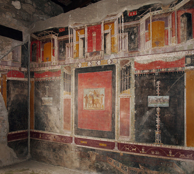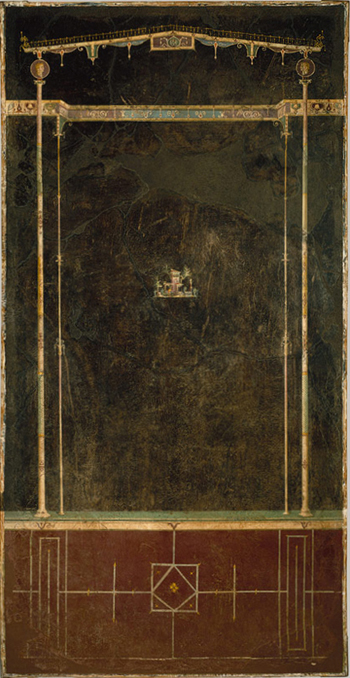 Although both wall-paintings are referred to as Third Style the image on the right makes no use of a secondary spatial plane, whilst the above uses window-like openings that are also an identifying feature of the Fourth Style. It was in response to iconographic problems such as this one that the concept of transitional phases within styles evolved, largely undertaken by German and Dutch scholars.