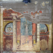 A new feature unique to Roman wall-painting emerged along with the increased use of architectural compositions. For some reason, which still remains unclear, entire wall-paintings were mirrored on opposing walls. The compositions remained virtually the same except for a few emblematic or symbolic differences (fig.3). From a formal point of view mirroring placed the viewer between entrances to two apparently identical metaphysical worlds, separated only by the physical space of the room. The conceptual implications of this are discussed in "Wall-Painting and the House as Sanctuary".