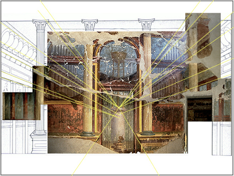 Toutes les peintures murales discutées ci-dessus partagent un point commun sur le plan des caractéristiques structurelles, à savoir, l’utilisation sophistiquée de la perspective linéaire et atmosphérique. Bien que ces usages ne se conforment pas aux lois géométriques et mathématiques établies durant la Renaissance, ils démontrent néanmoins une compréhension exceptionnelle de la psychologie de la perception visuelle(fig.1).