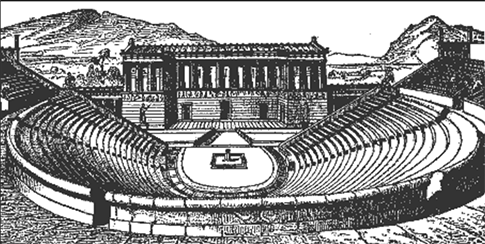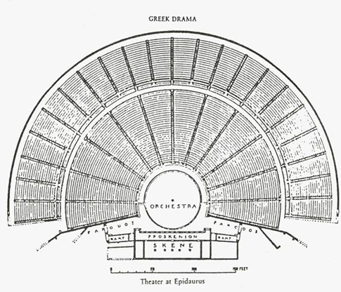 La présence du terme scaenae frons dans le texte de Dörpfeld et Reisch est déconcertante parce que ce terme est d’abord utilisé en relation avec le théâtre grec de Dionysos à Athènes. En revanche, Vitruve ne se sert de cette expression que dans un passage qui concerne exclusivement le théâtre romain (5.6.1) Ensuite, Dörpfeld et Reisch utilisent à la fois scaenae frons et scaenae tout au long de leur publication pour nommer la façade à colonnades à l’arrière des deux types de théâtre, le grec et le romain, même s’ il n’existe aucune preuve matérielle de structure à plusieurs étages dans le théâtre grec. Le fait de transformer une expression qui sert uniquement à situer un endroit en un nom commun a influencé d’une manière significative les publications ultérieures. Ce qui est encore plus surprenant c’est que ceci s’est produit malgré leurs propres réserves quant à l’usage de cette expression. Dans "Die Namen der einzelnen Teile der Theater."(Les noms pour les différentes parties du théâtre) page167, ils notent « Endlich war auch der Name scaenae frons insofern nicht ganz genau, als die vor der Skene stehenden Säulen richtiger als Proskenion bezeichnet werden ». « Finalement le terme scaenae frons n’était pas vraiment juste, ainsi, ce serait plus correct de nommer les colonnes en face de la scène, le Proskenion ».