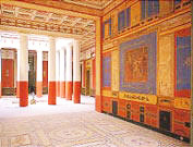 L’introduction des styles Empire et pompéien, ainsi que les diverses reconstitutions architecturales afférentes, notamment la maison de Castor et Pollux de Louis Premier de Bavière, le jardin pompéien de la reine Victoria (1884) et la maison pompéienne du prince Napoléon (1857), ont jeté les bases de notre vision des peintures murales romaines, vidée de toute essence païenne (fig. 5 à 7). À l’instar des appropriations stylisées de Raphaël, deux siècles auparavant, ces productions semblent revêtir la même gravité et le même caractère exotique qu’un artefact historique, tout en n’étant en réalité que des pastiches prises hors de contexte. Ce phénomène entraîne un effet pervers, car les originaux païens se sont vus privés de leur valeur symbolique pour devenir des décorations, au sens moderne du terme. Le programme culturel, politique et scientifique du néoclassicisme, sous-tendu par la révolution industrielle, a inscrit l’iconographie de Pompéi et d’Herculanum dans la culture mondiale et, ce faisant, a créé l’un des filtres les plus opaques existant entre notre perception et l’art spécifique de ces cités.