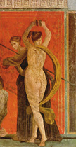 The majority of Roman history films used spectacle to attract audiences and in the more intimate scenes they used eroticised copies of wall-paintings to add sexual innuendo (fig.1&2). The cultural plundering that film-set designers engaged in contributed to the de-signification of ancient wall-painting. As a result it became Roman style wall-paper based upon a pastiche aesthetic, which was churned out by the metre. Film directors, on the other hand, were more concerned with getting the lead actresses' ‘pointy-bra’ in profile, than with the clichéd film sets that framed her (fig.3). Given the way in which narrative underpins film, the separation between fact, faction and fiction may always remain blurred. At the same time it must surely be a cause for concern, especially amongst those who advocate that we should tread carefully in history’s foreign land, that more and more Hollywood film clips seem to be showing up on Television in so-called history programmes.