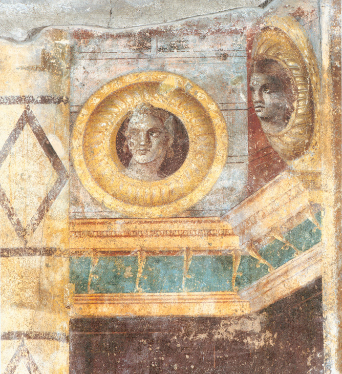 Villa di Poppea, Oplontis, atrium, detail of wall-painting depicting imagines clipeatae (ancestor effigies on commemorative shields)