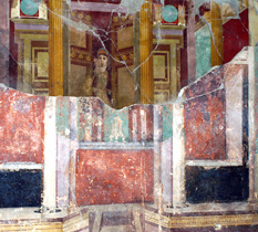 At the same time Pompeii also appears to have acquired an increasingly Roman identity, in which legionnaires were given property and Roman citizenship was made more accessible. This new Roman identity may also have included the adoption of increasingly pictorial forms of Roman wall-painting, since it was about this time that First Style marble replication gave way to Second Style virtual-realities. Coincidence, perhaps, but the dates that most observers attach to Second Style painting suggests that it appeared in Pompeii shortly after Sulla’s successful campaign. On the other hand it is equally possible that these sophisticated forms of perspectival painting developed in Magna Graecia and migrated north with Roman colonisation.