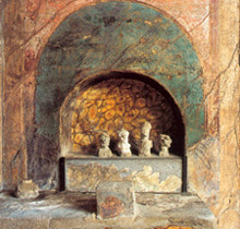 In many ways the Roman house was like a micro-version of the Roman city. Its inward facing open interior and windowless exterior gave it a fortress-like appearance that replicated a city protected by high walls. Its atrium mirrored the forum in the sense that they were both places in which to conduct public business and worship. In-house shrines and walled gardens mirrored the temples and sanctuaries located within the city walls and apotropaic images placed in or near house entrances mirrored the pomerium, the consecrated protective space around the city perimeter.