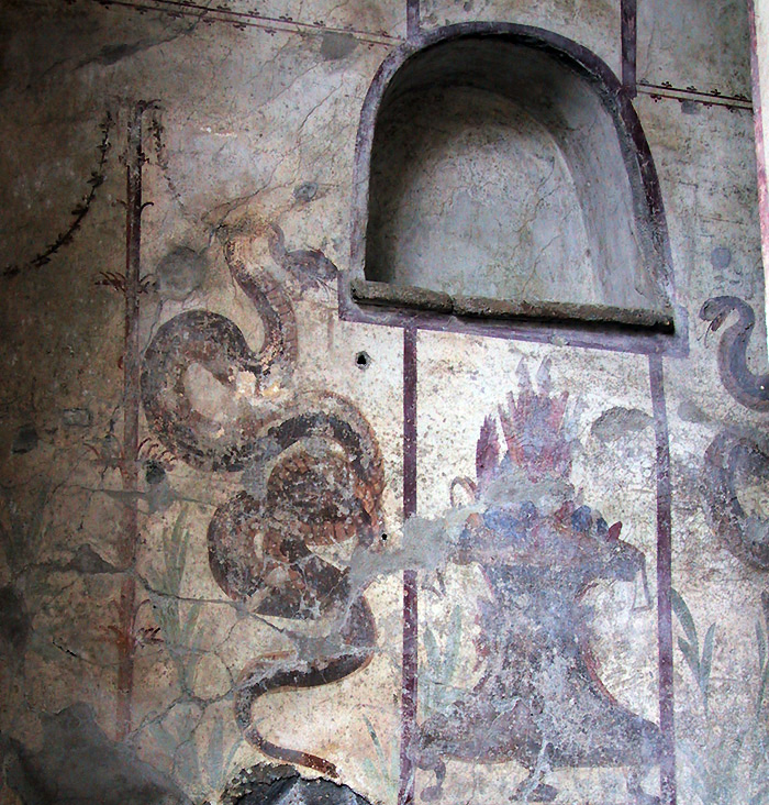 sous forme de niche, situé au-dessus d’un autel de bronze, Casa dell'Efebo, Pompéi