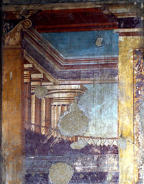 In order to fully understand how the Roman House was transformed from a shack into a shrine, we need to carefully examine what happened in the transition between mock marble surfaces (First 'Incrustation' Style) and sophisticated spatial painting (Second 'Architectural' Style) (fig.2&3). In recent years there has been a tendency to gloss over the First style because of its lack of iconic references (Laidlaw 1985 is a notable exception). As a result, the astonishing conceptual transition that occurred between First and Second Style wall-painting has not been fully analysed. And yet, without the First Style’s uncompromising reiteration of the wall as a simulacrum of itself, later conceptual developments might not have occurred in the way that they did.
