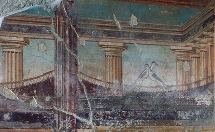 The numerous depictions of walls in Roman wall-painting located themselves within the psychological indivisibility that occurs when objects are replaced, in the same location, by their pictorial counterparts. Unlike Parrhasius’s pictorial curtains that fooled the artist Zeuxis into asking for them to be opened, Roman wall-painting went beyond mere trompe l’oeil trickery. It did not substitute the simulacrum for the object itself in order to bring about closure, but to expose the viewer to the possibility of metaphysical spaces beyond the pictorial curtain or wall, and thus by implication its physical counterpart (fig.1).
