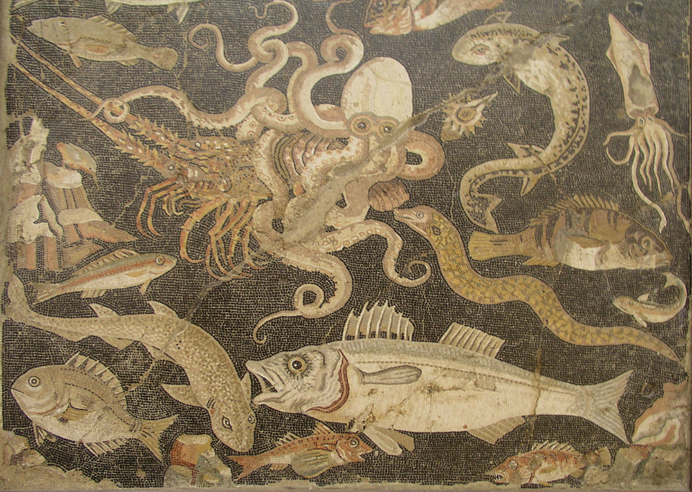 Mosaïque de poissons, Maison du Faune, Pompéi, à présent au Musée archéologique national, Naples.